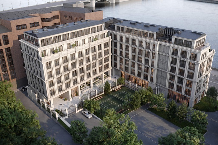 Два шестиэтажных корпуса включают как элементы здания постройки начала прошлого века, так и современные архитектурные решения. Выдержан клубный дом в стиле неоклассики - фасады с отделкой из природного камня, изящные кованые решетки французких балконов, оригинальные декоративные элементы, огромные окна.