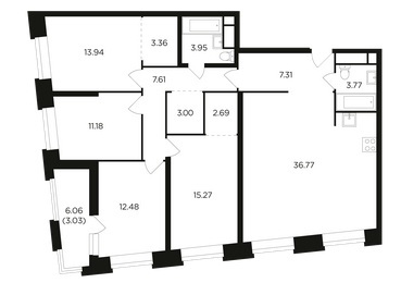 Высота потолков:3.2-3.6