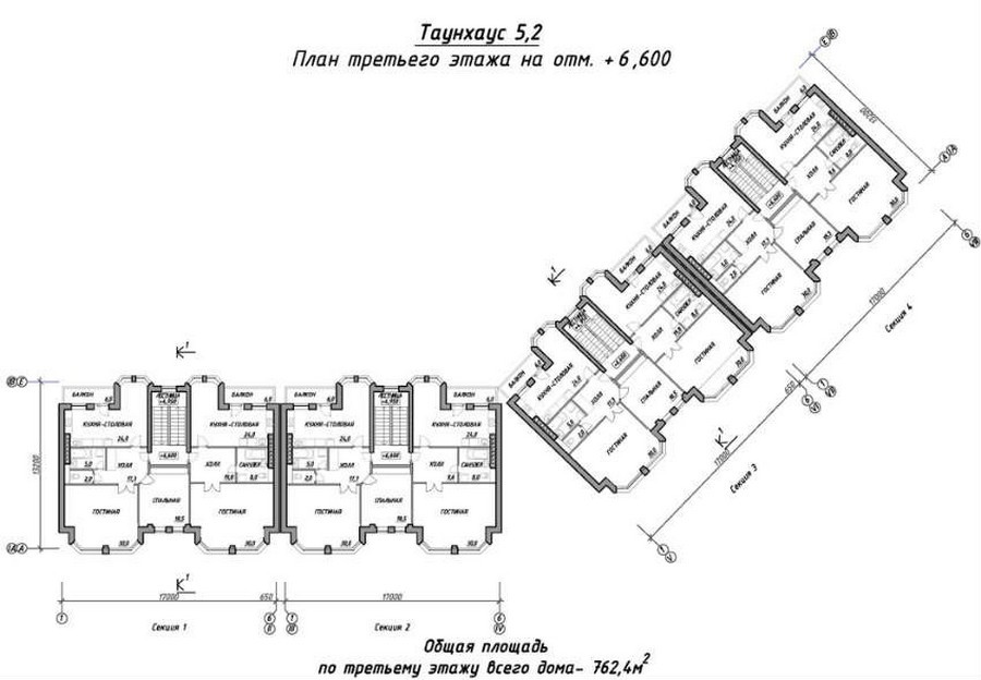 Площадь квартир:270 — 750 м2