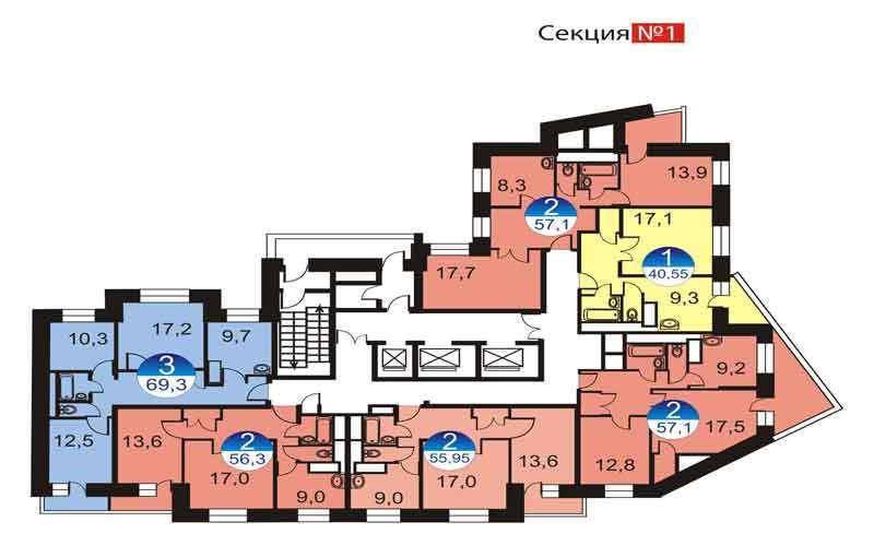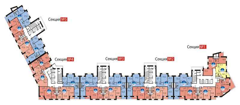 - Корпус№ 13 - 26-этажный пятисекционный дом, расчитанный на 569 квартир