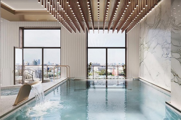 В доме предусмотрен полный комплекс систем комфорта, включающий приточно-вытяжную вентиляцию с тонкой фильтрацией с принципом забора воздуха с высоты 50 метров для повышения продолжительности жизни, отдельный сервисный лифт для обслуживающего персонала и другие современные системы.