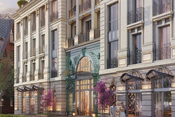 Здания возводятся по уникальному авторскому проекту в стиле московской классики — богатый декор фасадов, панорамное остекление, изящные французкие балкончики, роскошная входная группа.