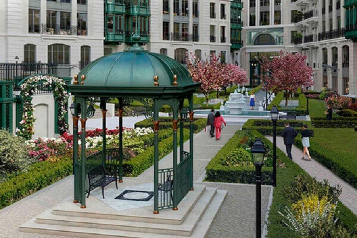 Территория ЖК «Ле Дом» закрыта от посторонних, работает охрана и консьержи. Во внутреннем дворе оформляется зона отдыха с ландшафтным озеленением. Подземный уровень комплекса отведен под паркинг.