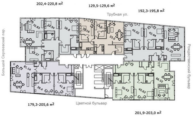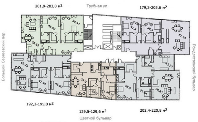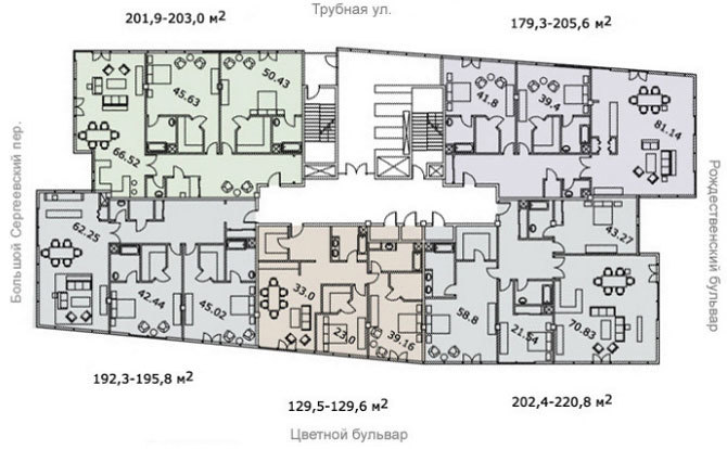 Исторический центр Москвы. Отличная инфраструктура района: школы, детские сады, ВУЗы, рестораны, бутики и т.д. В комплексе есть собственная инфраструктура: фитнес-центры, спа-салон, кафе, рестораны, паркинг. В пешей доступности находятся станции метро «Трубная» и «Цветной бульвар»