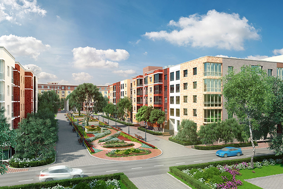 Территория застраивается мало- и среднеэтажными домами — высота их составляет 4-7 этажей. Предполагается несколько очередей строительства.