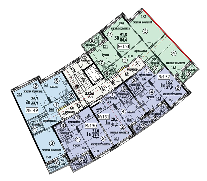 Квартиры в ЖК «Легенда» представлены от одно- до четырехкомнатных площадью от 40 до 120 кв. метров. Подключаются центральные городские коммуникации. Дворы озеленяются и благоустраиваются.