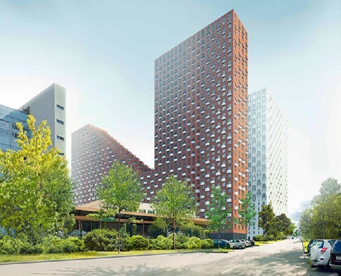 Новый ЖК — два монолитных здания высотой от 14 до 29 этажей, объединенные общим подземным уровнем, выдержанные в ярком современном стиле - авторство архитектурной концепции принадлежит известному бюро.