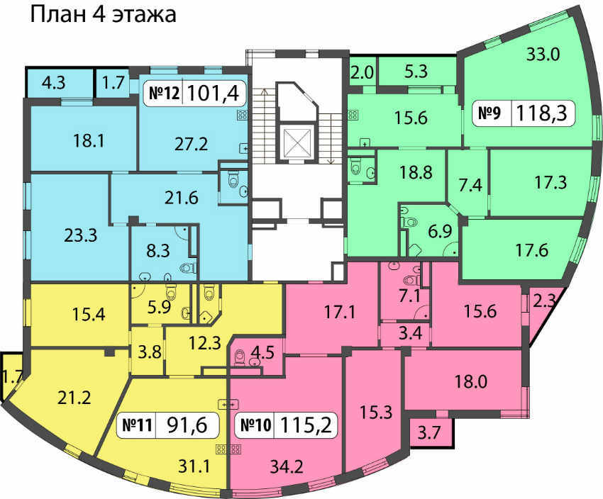 На закрытой охраняемой территории построено четырехэтажное здание, в котором разместилось всего 15 квартир — двух-, трех- и четырехкомнатных. Площади варьируются от 90 до 118 кв. метров. Квартиры предлагаются в двух вариантах — без внутренней отделки или же полностью готовыми к проживанию, с ремонтом премиум-класса.
