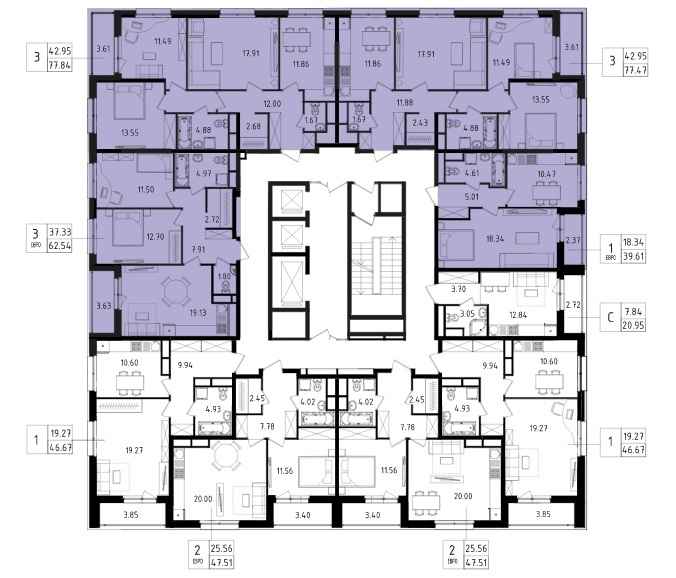 Площадь квартир:24.4 — 89 м2
