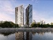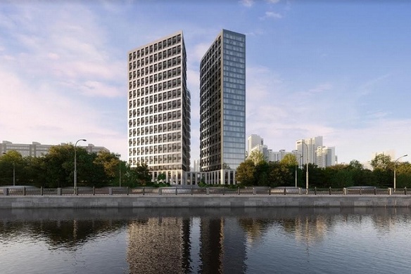 Башни переменной высотности (26-27 этажей) возводятся на едином стилобате по проекту известного архитектурного бюро. Сочетание в отделке фасадов темных и светлых металлических панелей создает эффект ряби на воде, меняясь в зависимости от освещения. Впечатление водных бликов усиливается и за счет необычных, скругленных силуэтов зданий, и за счет огромных панорамных окон — в квартире их может быть до пяти.