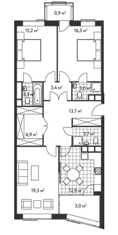 Концепция клубного дома в ЖК «Счастье на Масловке» соблюдается в полной мере — здесь предлагается всего 57 квартир, от одно- до четырехкомнатных. Площади начинаются от 49 кв. метров.