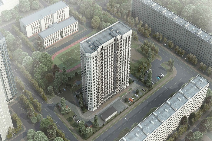19-этажный двухсекционный монолитный дом возводится по оригинальному проекту, привлекая внимание необычным силуэтом, стильными фасадами, большими балконами с изящным ограждением, панорамными окнами.