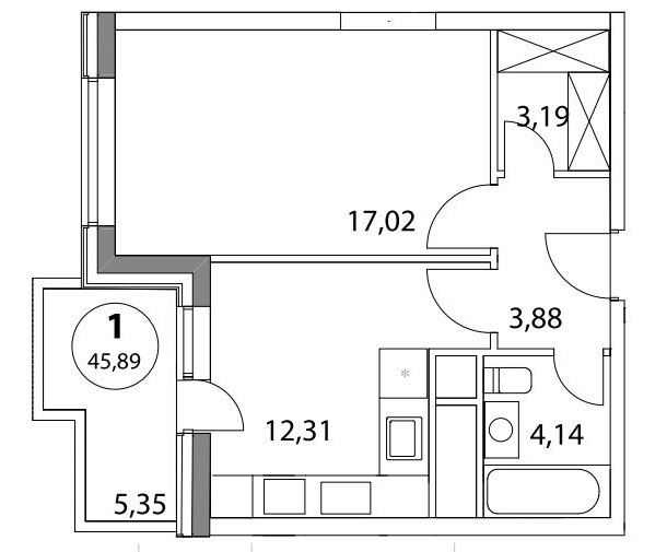 Площадь квартир:36 м2