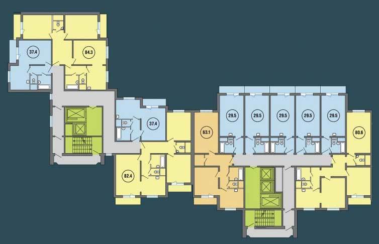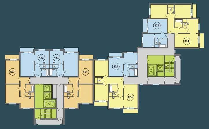 Комнаты в квартирах достаточно просторные, также радуют большие кухни. Архитектурное и дизайнерское исполнение достаточно гибкое по своей структуре, любые нежелательные элементы можно с легкостью сменить, или наоборот восполнить недостающие детали интерьера.