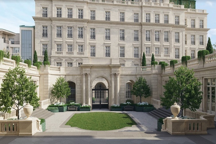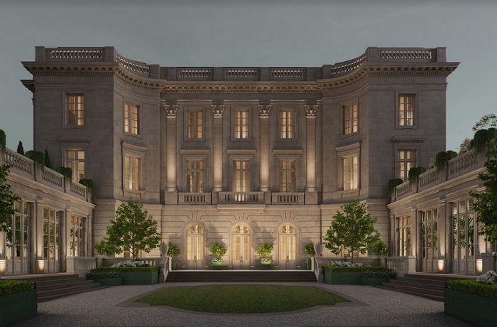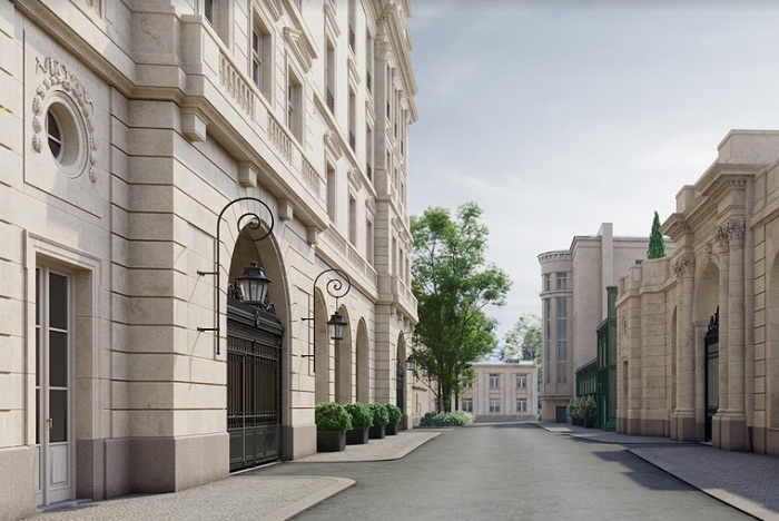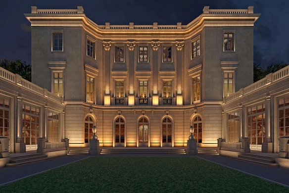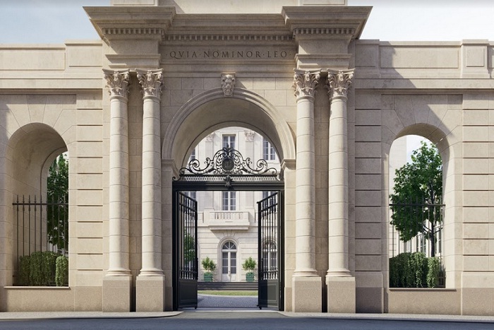 На закрытой, охраняемой территории возводятся два здания - шестиэтажный особняк и трехэтажный клубный дом, выдержанные в стиле «московской классики» - строгие серые фасады с колоннами, панорамные окна, богатый декор просторных входных групп.