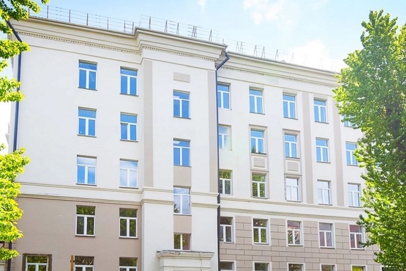 Пятиэтажное кирпичное здание постройки середины прошлого века полностью реконструировано — заменены инженерные системы и коммуникации, перепланировано внутреннее пространство, отреставрированы фасады.