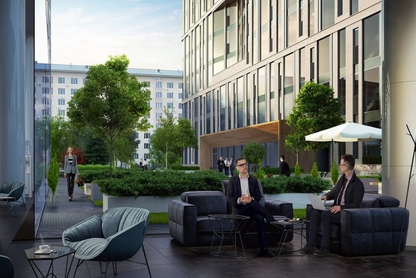 Первые этажи отведены под коммерческие помещения — там откроется торговая галерея и рестораны. В подземном уровне расположится вместительный паркинг. Все корпуса объединены общей зоной отдыха с ландшафтным озеленением, скамьями, фонтаном, велосипедными и прогулочными дорожками.