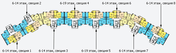 Входы оснащены пандусами. Застройщиком представлены 1-3-комнатные квартиры различной планировки, в том числе апартаменты-студии площадью 26,8-31,3 кв.м, помещения без межкомнатных перегородок или с зональным разграничением пространства площадью 34,7-86 кв.м. В помещениях устанавливаются двухкамерные стеклопакеты, организовываются эркерные окна. Лоджии и балконы остеклены. Высота потолков достигает 3 м.