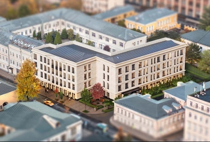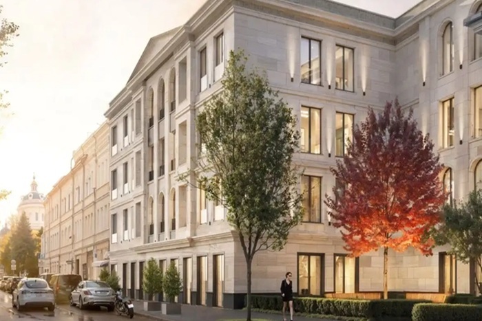 Проект был разработан архитектурным бюро VOSTOK, акцентировавшим внимание на гармоничном сочетании с окружающей архитектурой и сохранении духа исторического наследия. Фасад облицовывается натуральным камнем и дополняется горизонтальными карнизами, полуарочными окнами, французскими балконами и панорамными окнами.