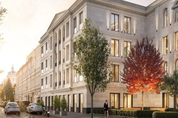 Четырехэтажное здание выполнено в неоклассическом стиле и включает 24 квартиры, среди которых 5 резиденций с отдельным входом.