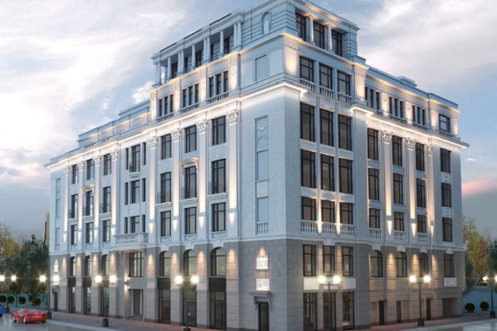 Семиэтажное монолитное здание, выдержано в классическом стиле старой Москвы. Авторство архитектурной концепции принадлежит известному бюро. Здание будет привлекать внимание богатым декором фасадов и огромными окнами. Под стать внешней отделке и дизайн просторных входных групп — мраморные полы, эксклюзивная мебель, лаунж-зона с камином.