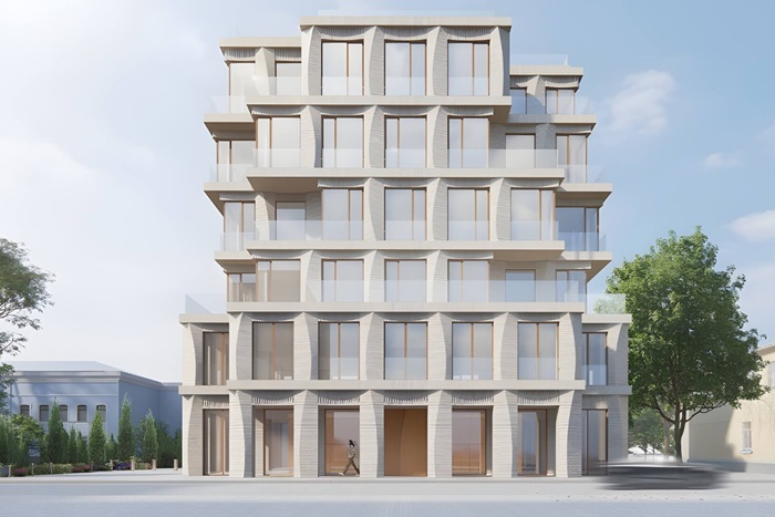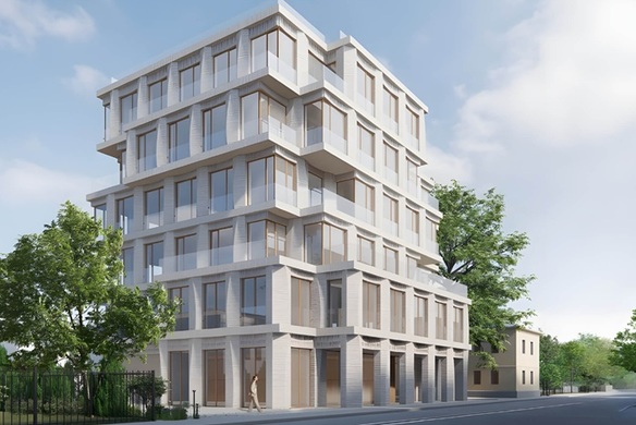 Фасад здания выполнен в современном классическом стиле с элементами, гармонирующими с исторической застройкой района. Интерьеры и общественные пространства выдержаны в духе сдержанной элегантности, характерной для премиального жилья.