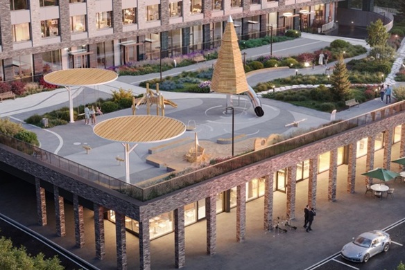 Собственная инфраструктура новостройки «Мангазея на Речном» включает подземный паркинг на 2000 машиномест, коммерческие помещения и школу на 825 учеников.