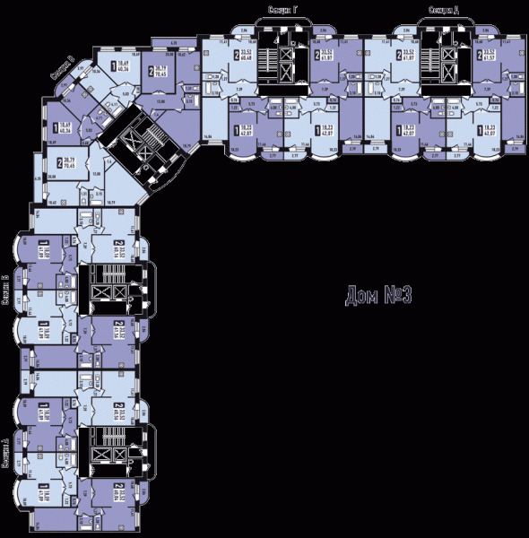 Площадь квартир:41.9 — 70.4 м2