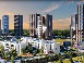 На огромной парковой территории возводятся четыре монолитных корпуса переменной высотности (от 9 до 24 этажей). Дома выдержаны в современном стиле — строгие силуэты, панорамные окна, просторные входные группы.