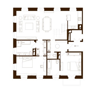 - Квартиры в малоэтажных домах. Всего их будет 24, площади начинаются от 83 кв. метров. Планировки индивидуальные, в том числе представлены редкие форматы — со вторым светом.