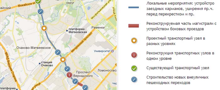 Потому что на МКАДе, который тут совсем недалеко, каждый день серьезные пробки — как в одну, так и в другую сторону. А через Мичуринский проспект, Ленинский проспект или Рублевское шоссе ездить каждый день — не самое приятное времяпрепровождение. Во всяком случае, в течение всего дня движение во многих места очень плотное из-за дорожных работ.