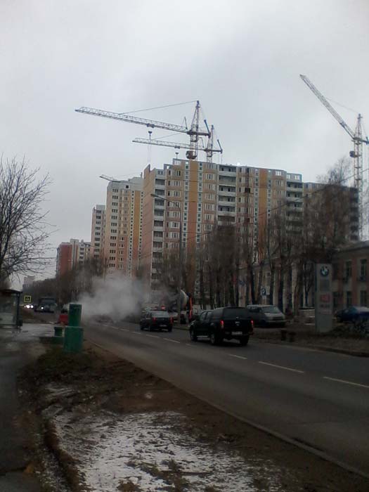 Впрочем, к уже заселенным домам можно отнести не более трех-четырех зданий. В остальных же кипит работа, на территорию строек постоянно въезжают и выезжают небольшие грузовики. Сами дома уже полностью возведены. В одних местах дома строители занимаются сейчас внутренней отделкой, в других частях - проведением света или прокладкой различных труб. В целом же дома выглядят весьма прилично и, судя по их внешнему виду, строятся с соблюдением всех технологий. Правда, на вопрос, проводилась ли перед строительством геологическая разведка, мне затруднились ответить.