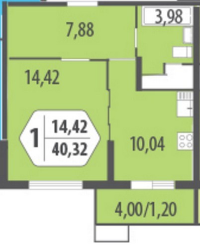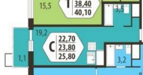 - Однокомнатные 37,52 - 38,4 кв.м;