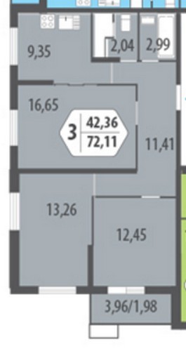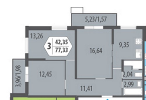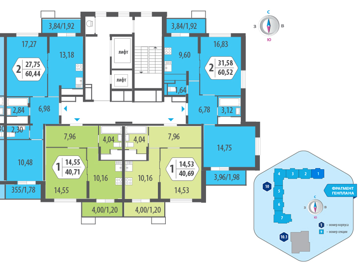 - Трехкомнатные 69,59 - 81,7 кв.м;