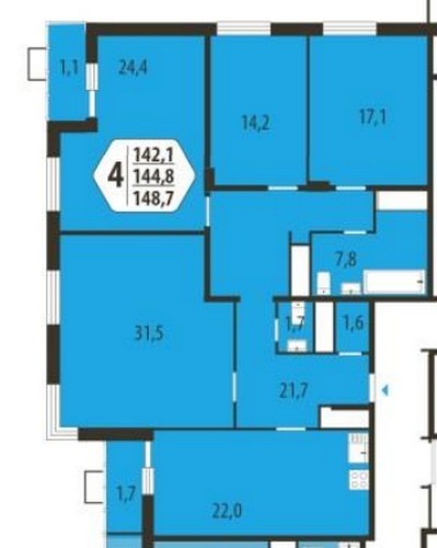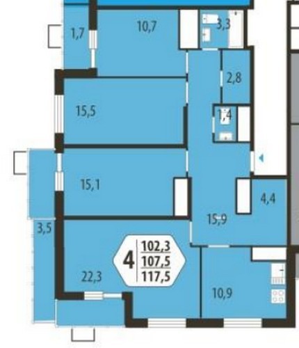 - Четырехкомнатные (они представлены только в монолитных домах) 117-149 кв. метров.