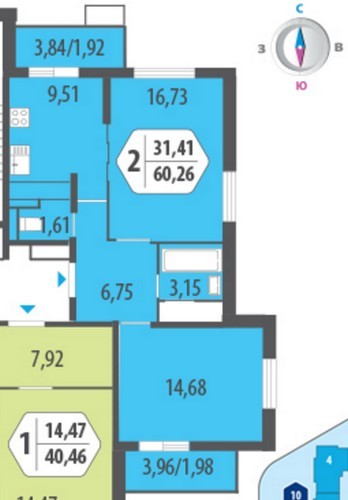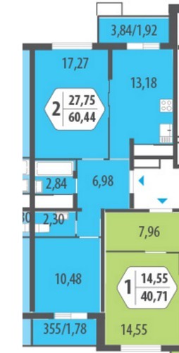 - Двухкомнатные 53,21 - 65,55 кв. м;