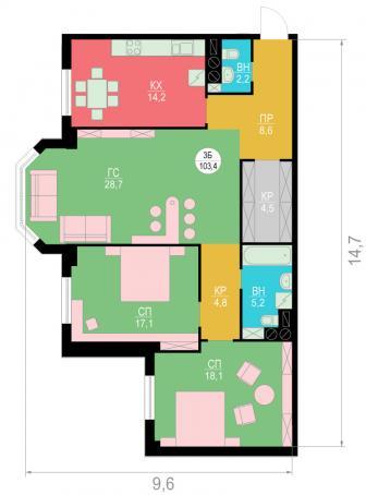 Новостройка "Мирный" – это 82 квартиры свободной планировки площадью 49,8-106 кв.м. В помещениях выполняется панорамное остекление, монтируются двухкамерные стеклопакеты в деревянных рамах, металлические входные двери.