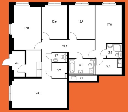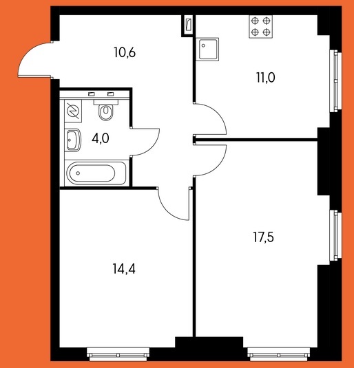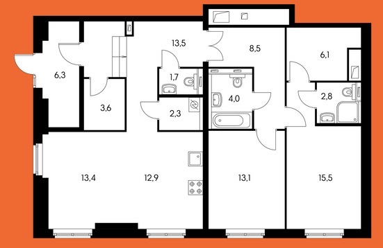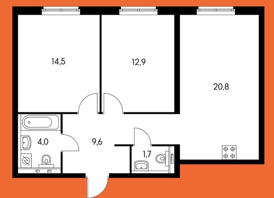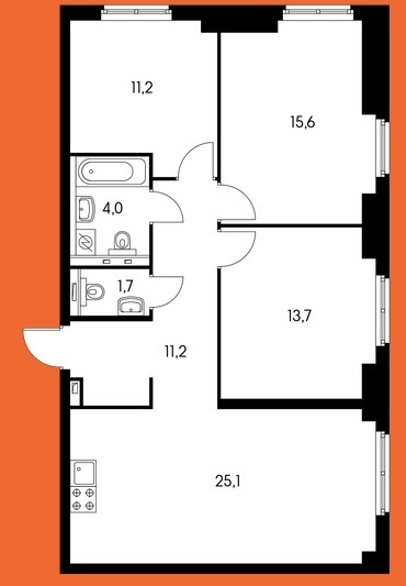 Площадь квартир:21 — 101 м2
