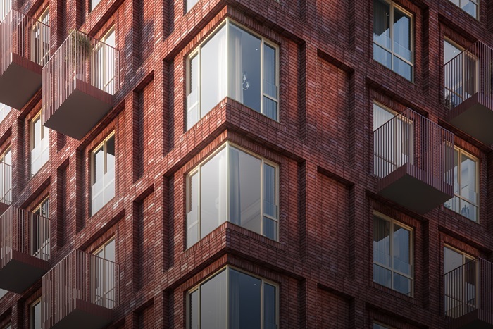 Лобби оформлены в стиле минимализма с использованием долговечных материалов, таких как кирпич, мраморный пол из терраццо, плитка и стекло. Паркинг - подземный, с доступом на лифте прямо с жилого этажа