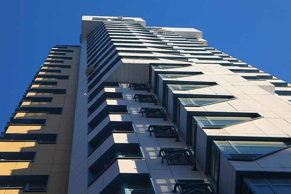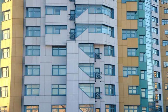 На закрытой, охраняемой территории выстроены три монолитных односекционных корпуса высотой от 17 до 23 этажей. Здания привлекают взгляды яркими фасадами с оригинальным декором, необычными силуэтами, сплошным остеклением балконов и лоджий.
