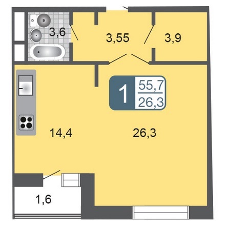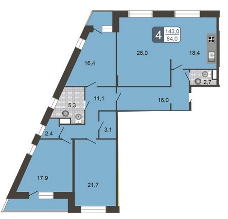 Площадь квартир:55 — 180 м2