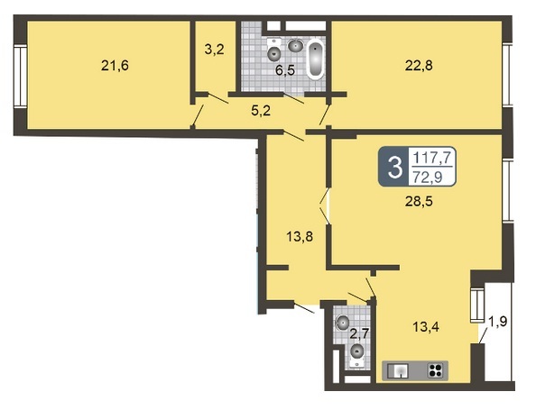 Выбор квартир вполне достойный — от одно- до пятикомнатных. Сданы они без внутренней отделки.