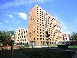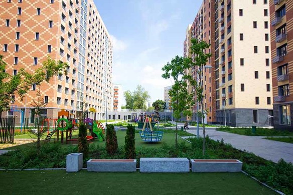 Новый комплекс - три монолитных здания переменной этажности (5-14-15 этажей), образующие просторный двор — зеленый и обустраиваемый для отдыха жителей.