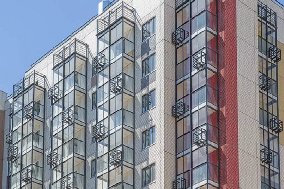 Новый комплекс — девять многосекционных панельных корпусов высотой 11-14 этажей. Облицованные керамической плиткой фасады — они выдержаны в сдержанных пастельных тонах, большие окна, сплошное остекление балконов и лоджий — все это придает зданиям запоминающийся и современный облик.