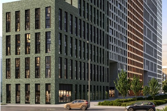 Квартал состоит из четырех корпусов переменной высотности, от 7 до 30 этажей. Автором архитектурного облика вляется известное столичное бюро - элегантные арки, глянцевые металлические панели, клинкер в природных оттенках, панорамные витражи. Ярким акцентом станет полностью остекленный верхний этаж.