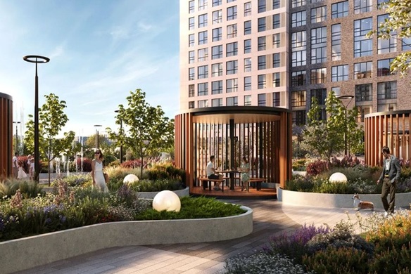 Между корпусов появится благоустроенное парковое пространство: цветущий сад с удобными шезлонгами, перголами и скамьями, многоуровневая игровая площадка для детей и подростков, зона для воркаут-тренировок и йоги, беговые, прогулочные и велосипедные дорожки.