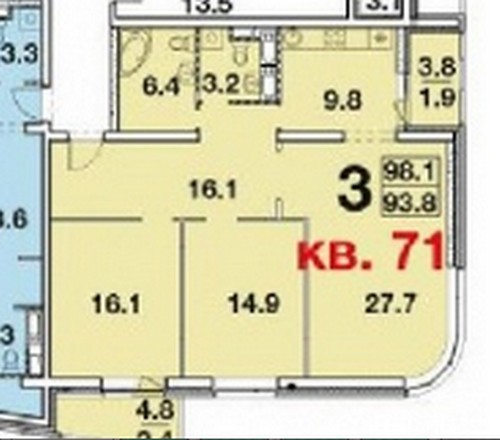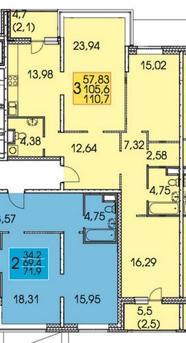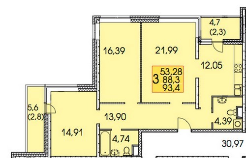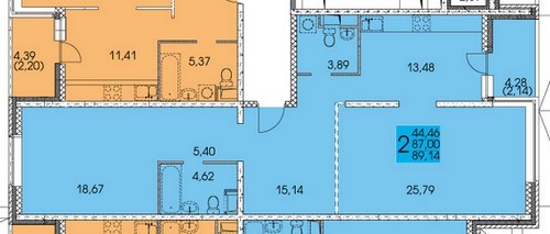 Площади квартир в комплексе (1, 2 и 3-комнатных) составляют от 45 до 107 кв. метров. Предлагаются они с черновой отделкой — в них установлены стеклопакеты, входные двери и радиаторы отопления, остеклены лоджии и балконы.