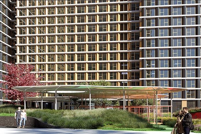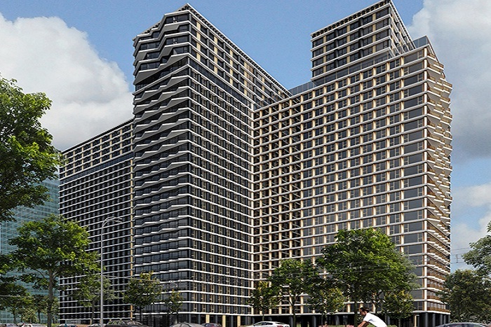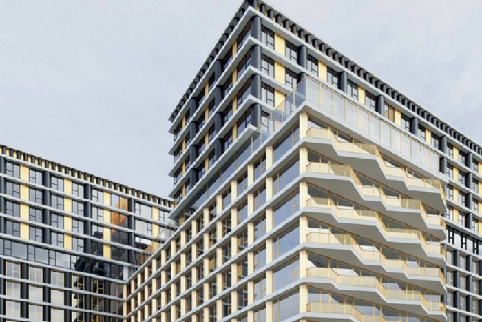 Новый комплекс - четырехсекционное монолитное здание переменной высотности (24-29 этажей), возводимое про проекту нидерландского архитектурного бюро: фасады с отделкой из разноцветного металла, панорамное остекление, оригинальные входные группы.