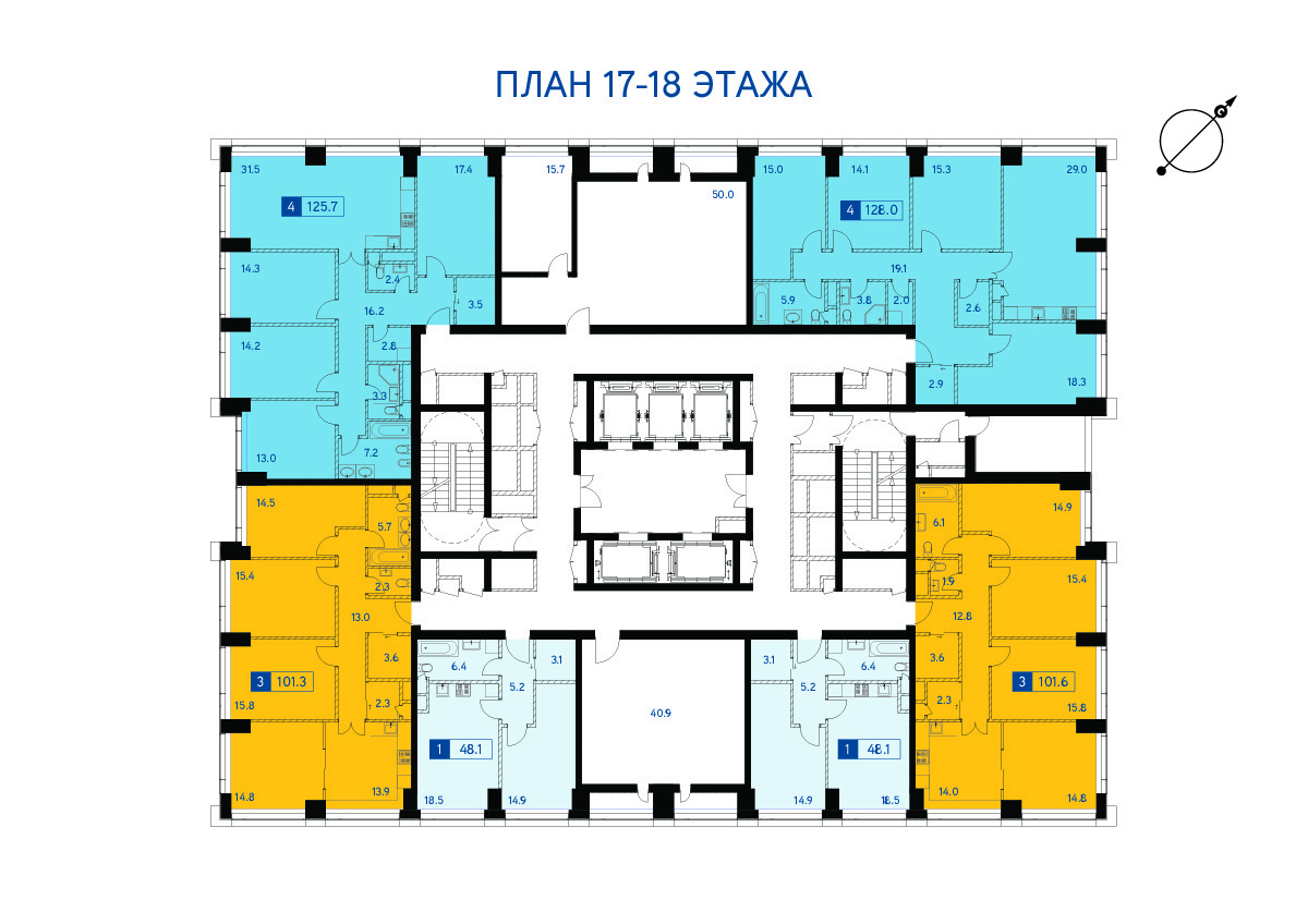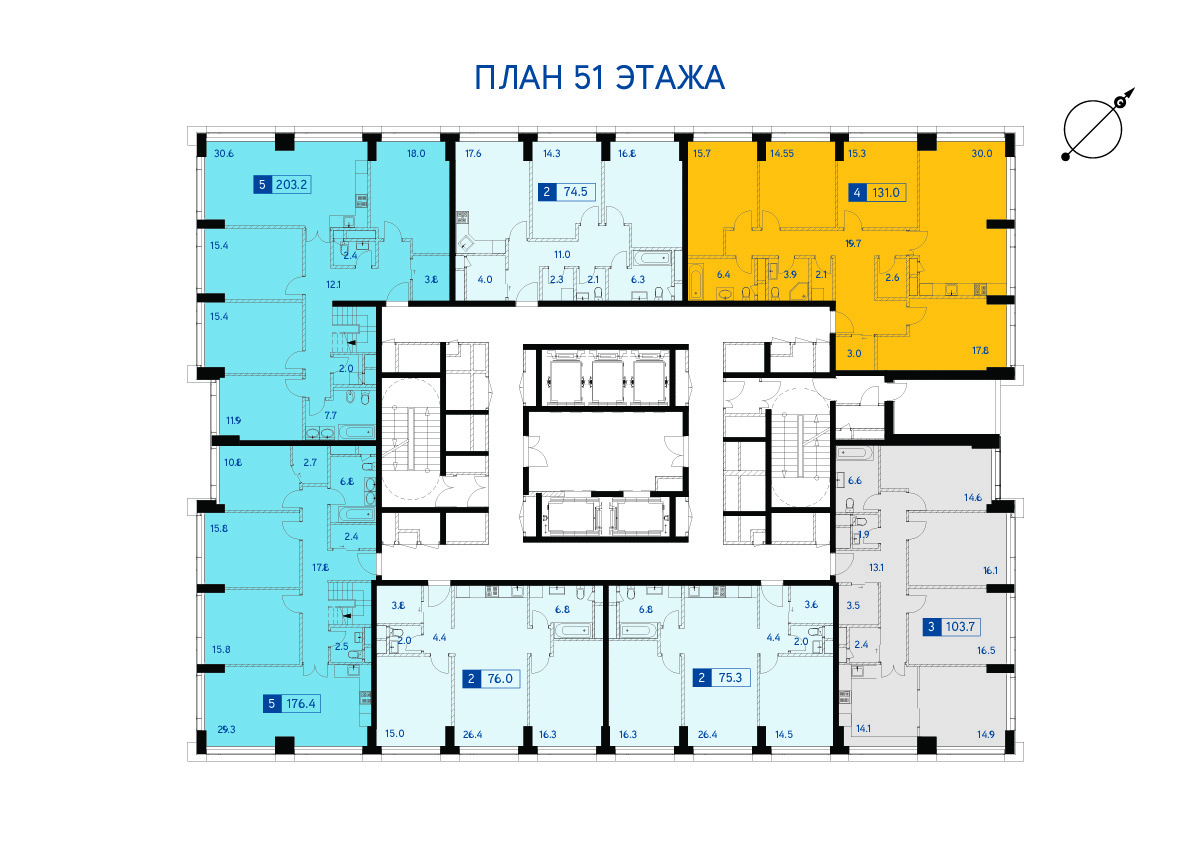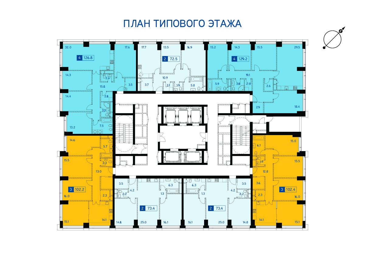 Общая площадь проекта составит 157057 кв.м, более половины из нее - 99184 кв.м, придется на жилье. Квартирография богатая — одно-, двух-, трех- и четырехкомнатная недвижимость с выбором планировочных решений в каждом типе, площади начинаются от 48 кв. метров.