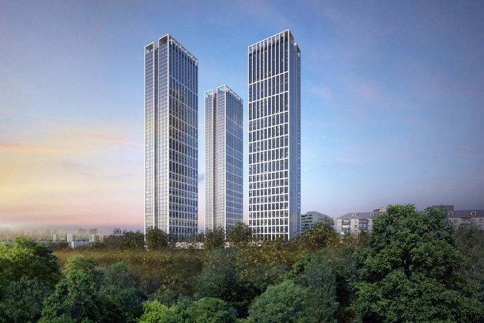 Новый комплекс — три монолитных «башни» высотой каждая в 51 этаж, расположенные на общем стилобате. Выдержаны здания в подчеркнуто современном стиле — сплошное остекление светлых фасадов, строгие линии, просторные входные группы с дизайнерскими интерьерами.